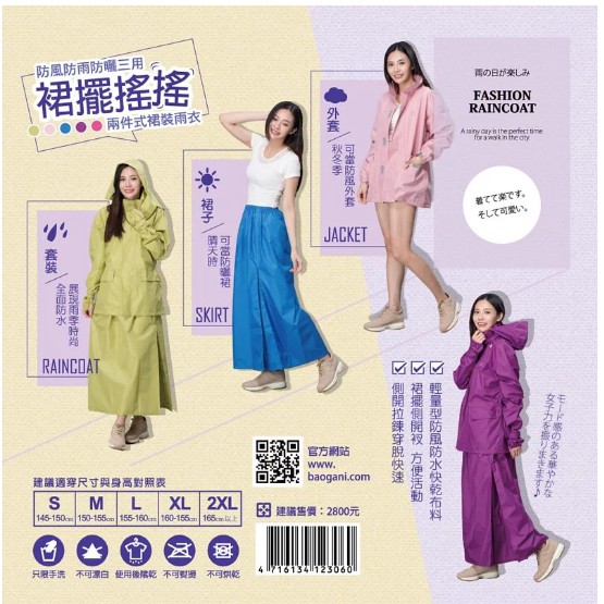 【周傳】東伸 裙襬搖搖女仕型套裝雨衣 機車雨衣 二件式雨衣 風衣 裙裝 版型偏小,建議比平常尺寸大一號