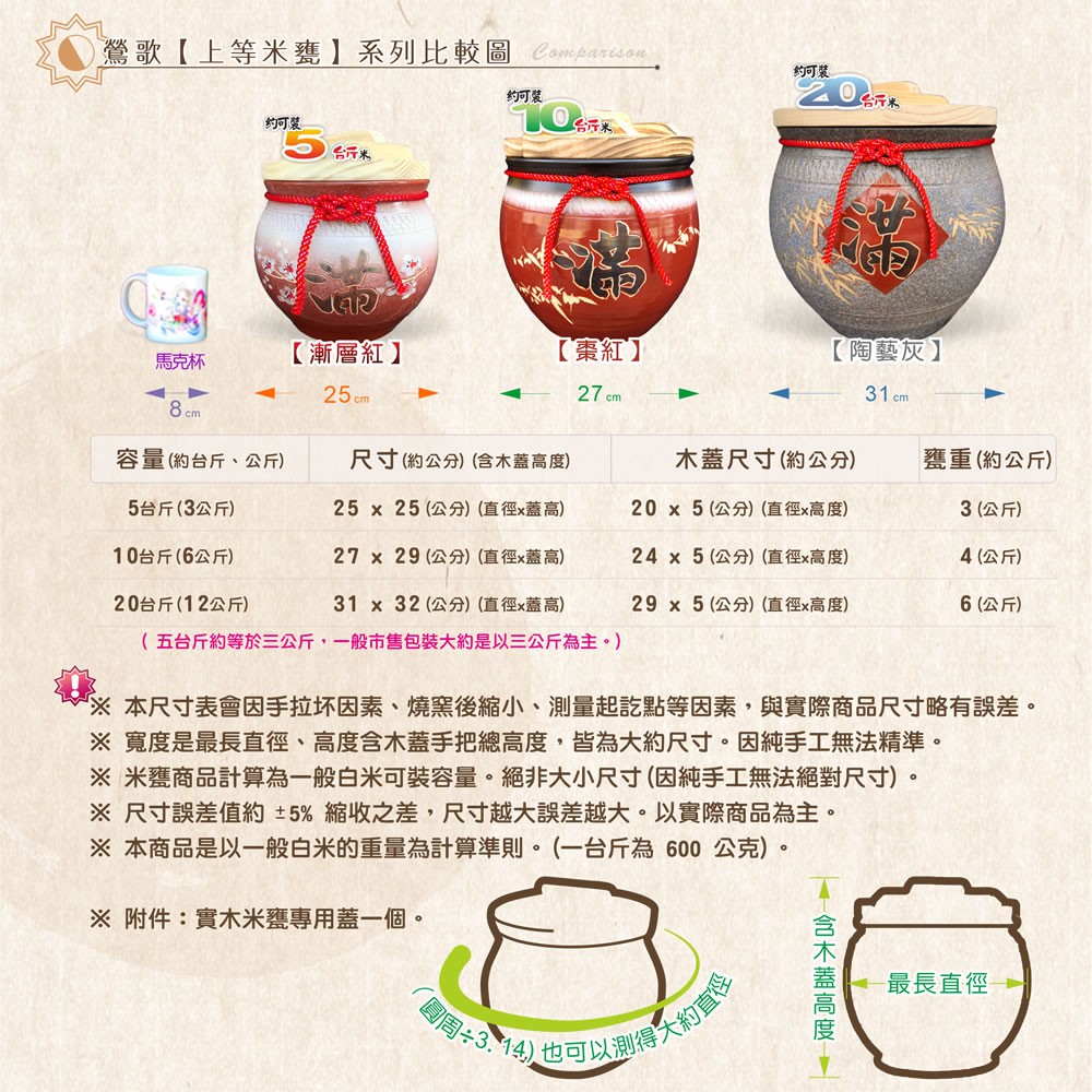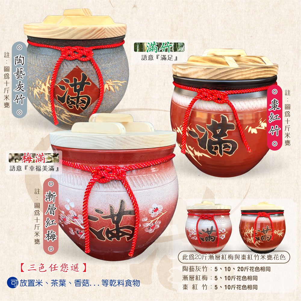 【唐楓藝品米甕】上等棗紅、漸層紅、陶藝灰米甕(三色擇一) | 約可裝 5-20 台斤米