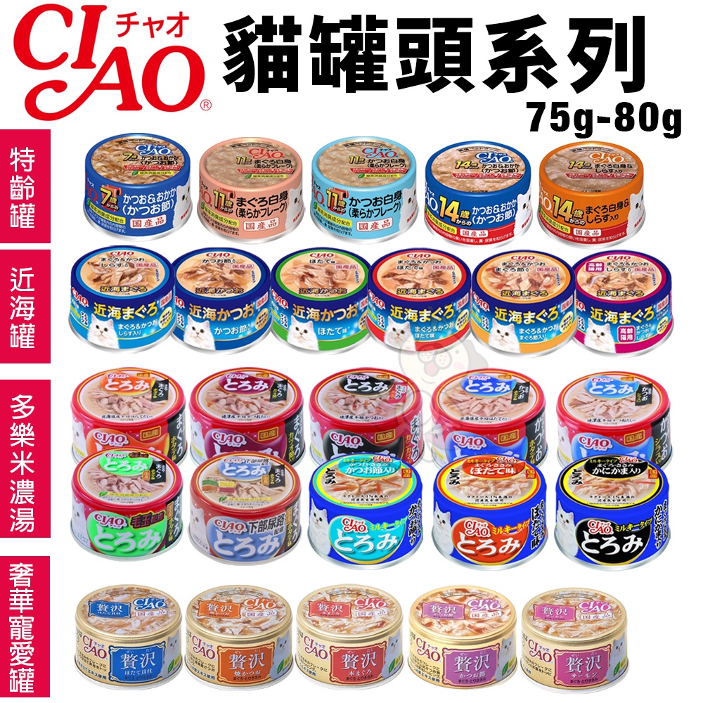 【單罐】日本 CIAO 貓罐頭75-80g 台灣公司貨 特齡罐 近海罐 多樂米濃湯 奢華寵愛 貓罐『Chiui犬貓』