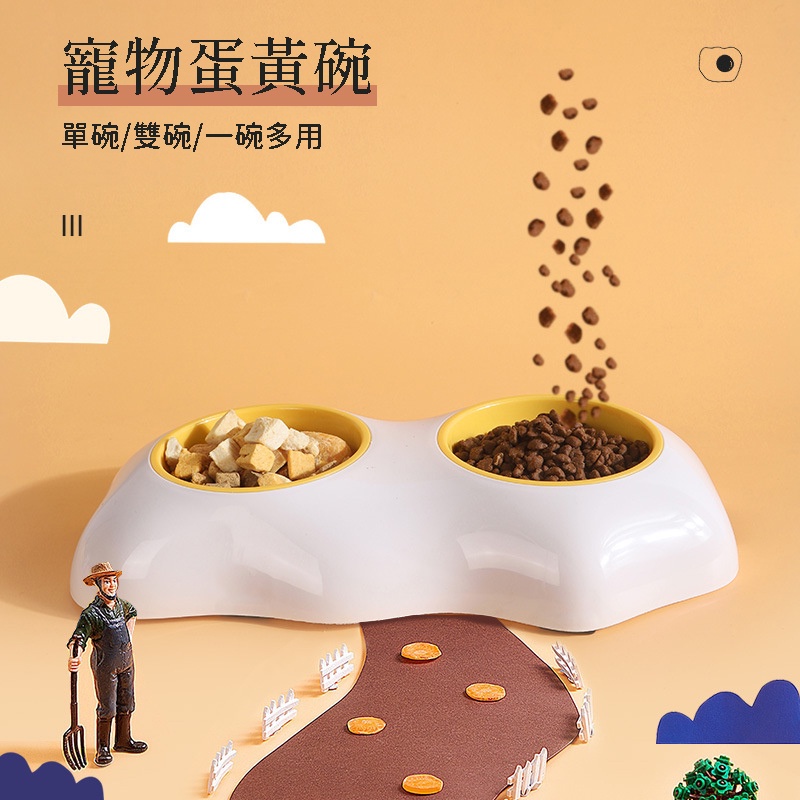 【喵的咧選物】寵物碗 蛋黃造型 單碗 雙碗 飼料碗 寵物餵食 餵食碗 荷包蛋 貓碗 狗碗 防打翻【台灣現貨】