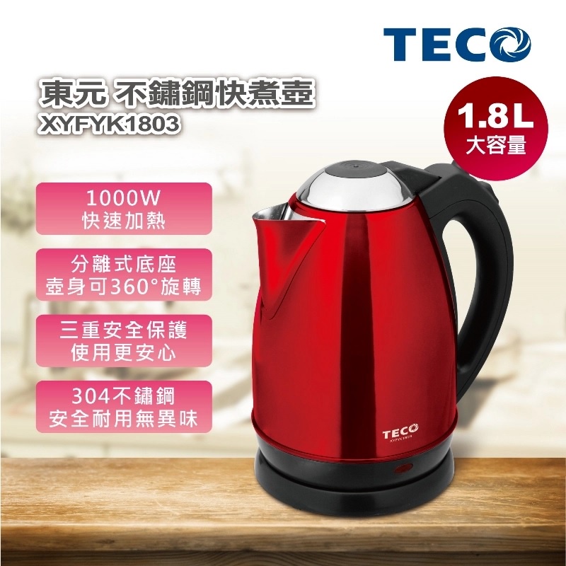 【嚴選福利品】◤防乾燒/阻燃級材質◢ TECO東元 1.8L 不鏽鋼快煮壺 XYFYK1803∥1000w快速加熱
