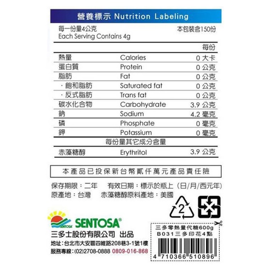 【嚴選SHOP】三多 零熱量代糖 600g罐裝 赤藻糖醇 生酮飲食 赤藻糖 零卡路里 純素 純天然來源代糖【Z033】