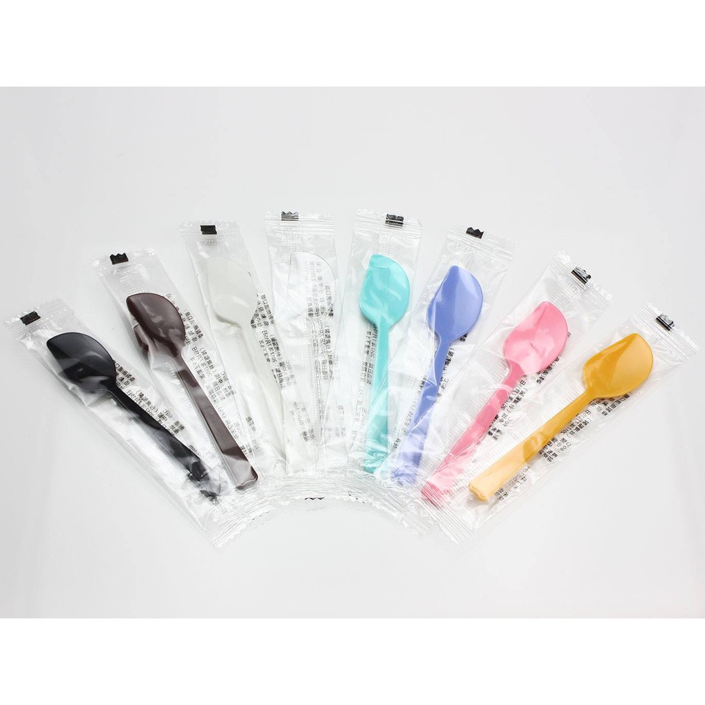 【嚴選SHOP】單支獨立包裝 100入 馬卡龍繽紛布丁匙 布丁湯匙 甜點湯匙 塑膠餐具 免洗餐具 餐廚用品【W010】