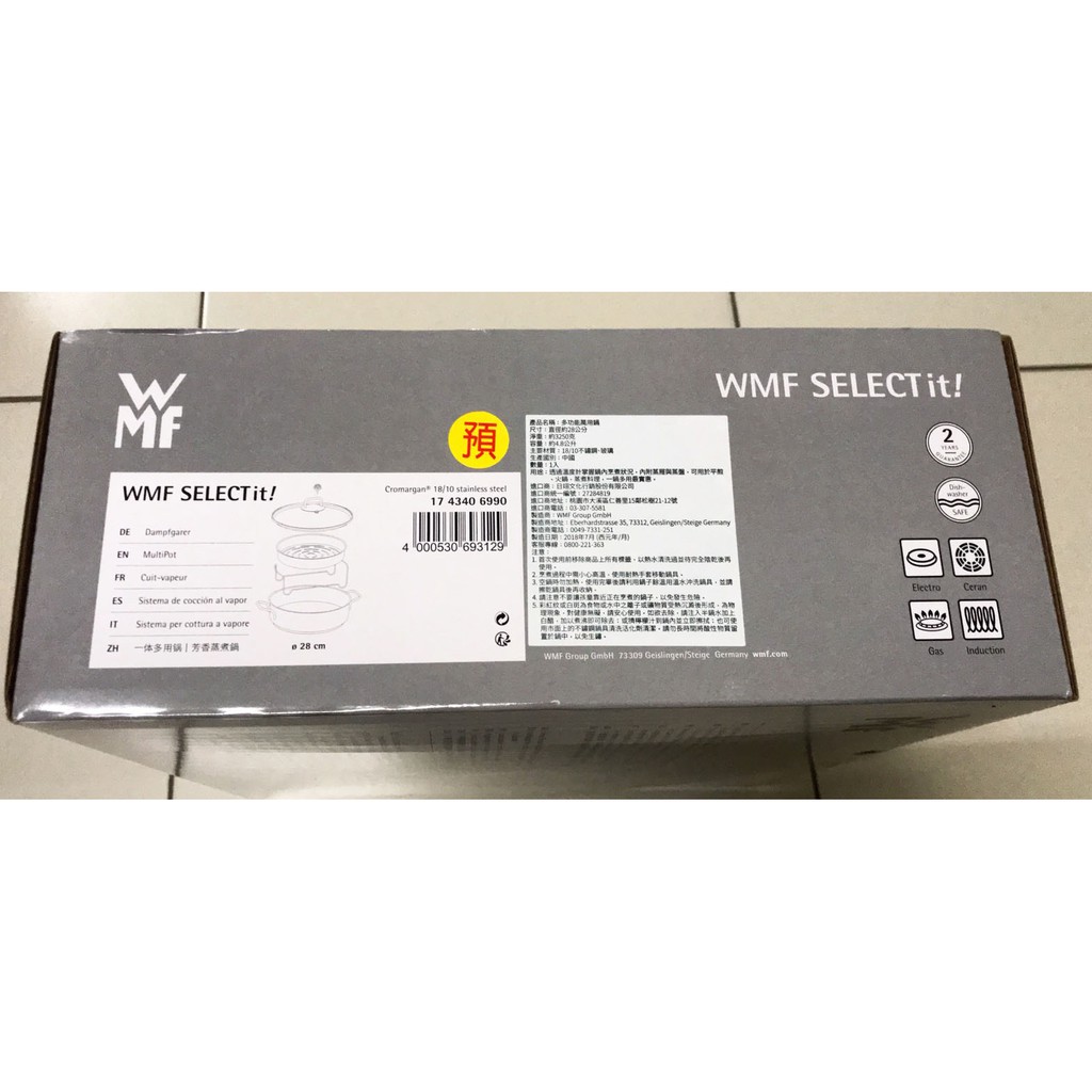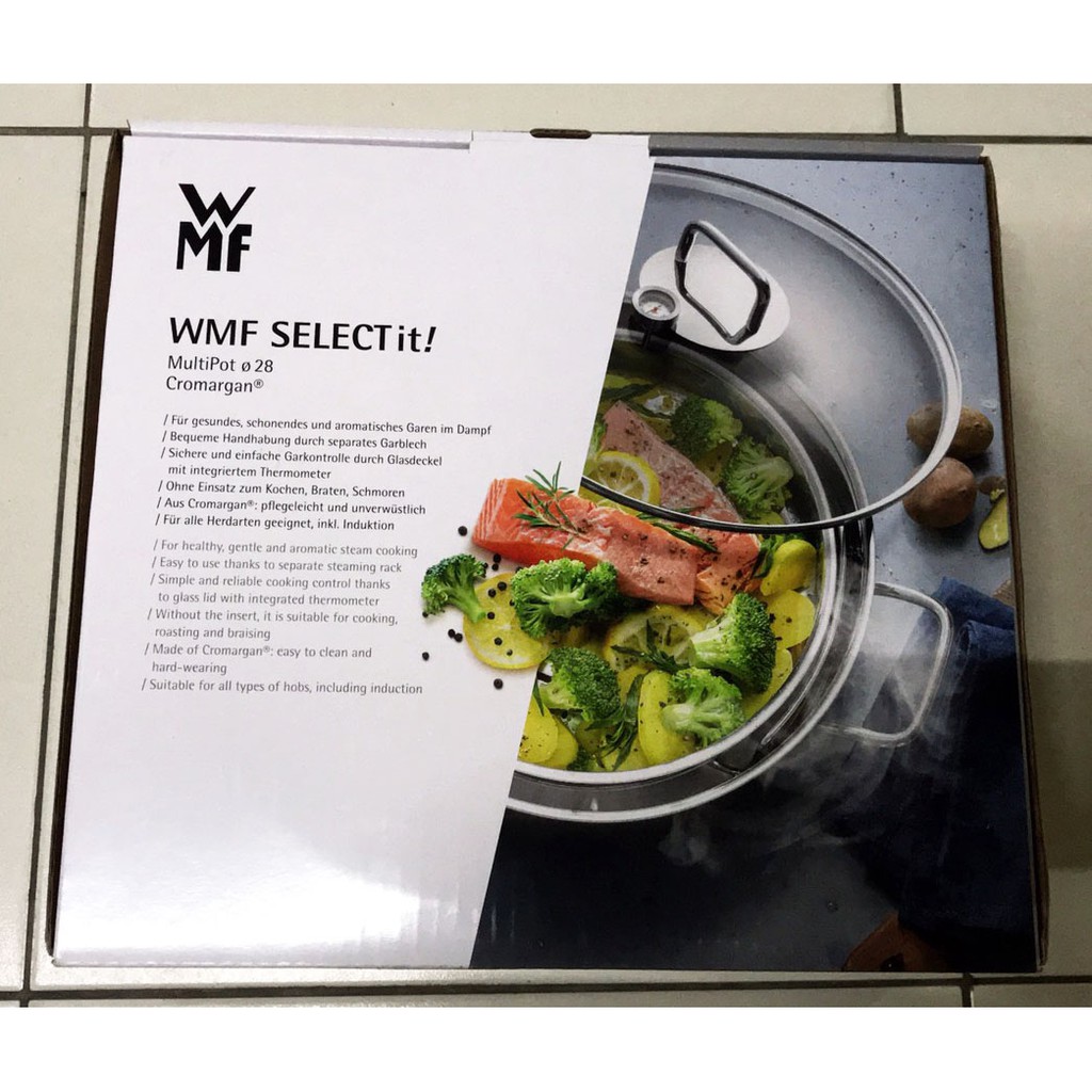 【堆堆樂雜貨店】╭☆全新現貨++全家 德國WMF 多功能不鏽鋼萬用鍋 28公分 可蒸可煮 有溫度計