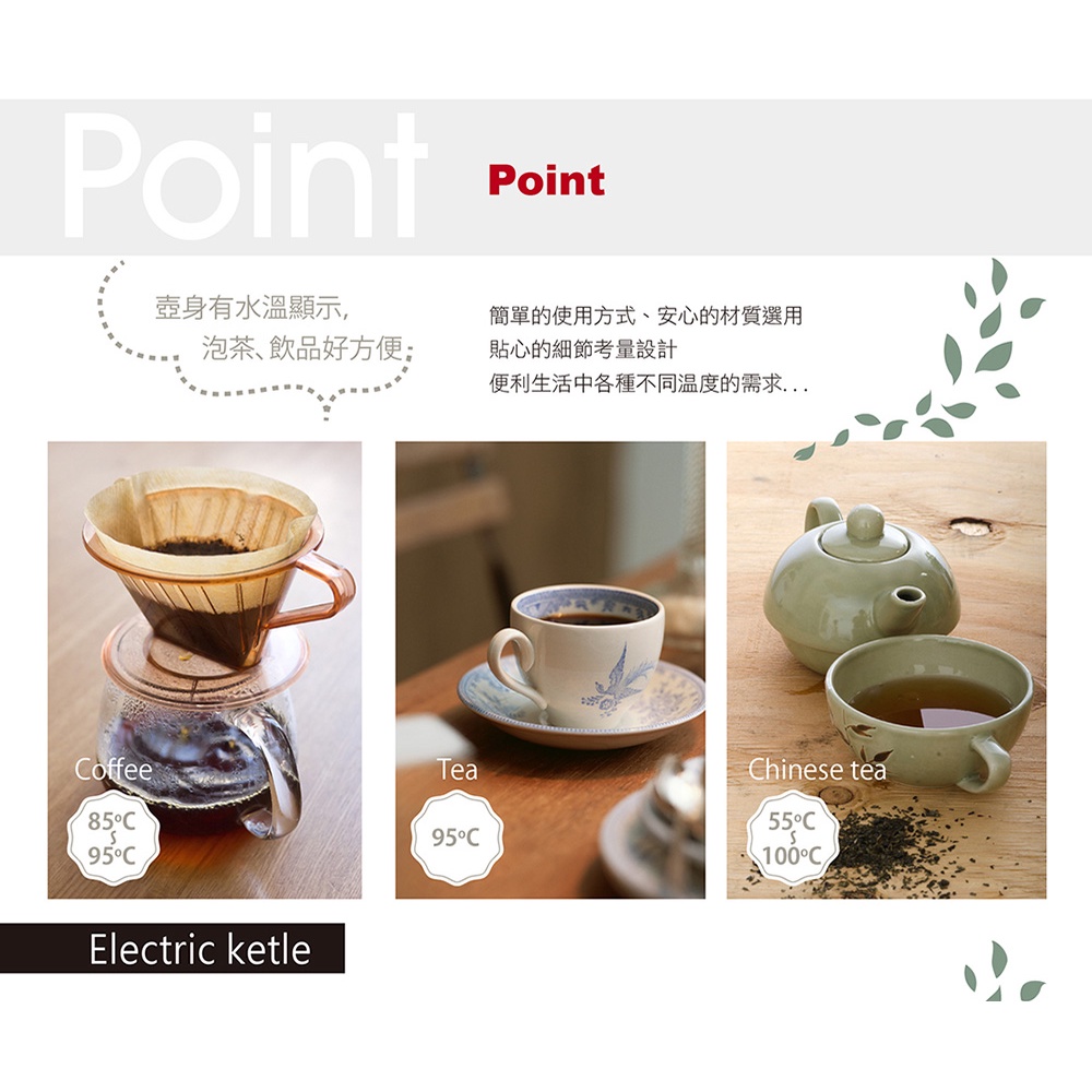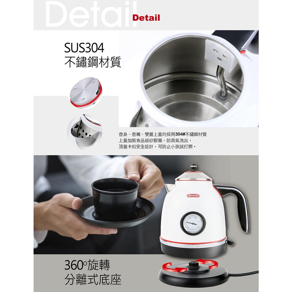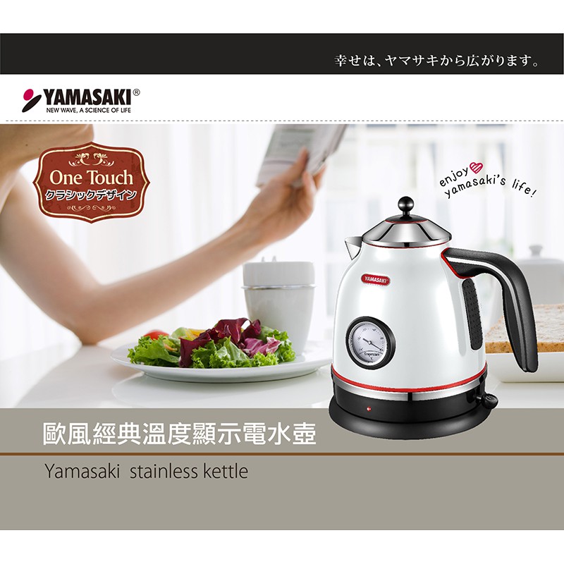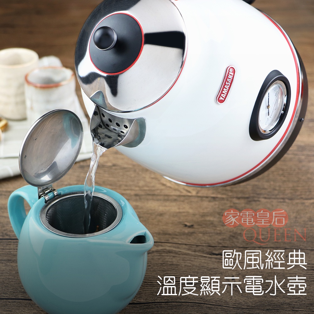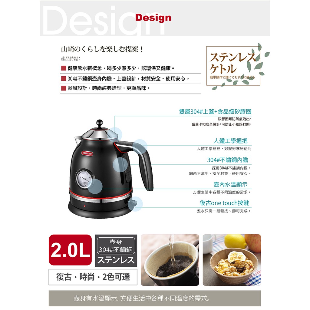 【壺內溫度計】山崎2.0L歐風經典溫度顯示電水壺(黑/白) 快煮壺 電壺 電熱壺 電茶壺 SK-1917S
