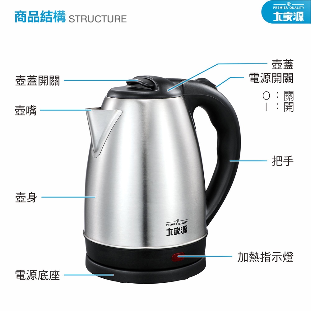 【大家源】1.8公升 304不鏽鋼快煮壺 TCY-269018(改版白色)