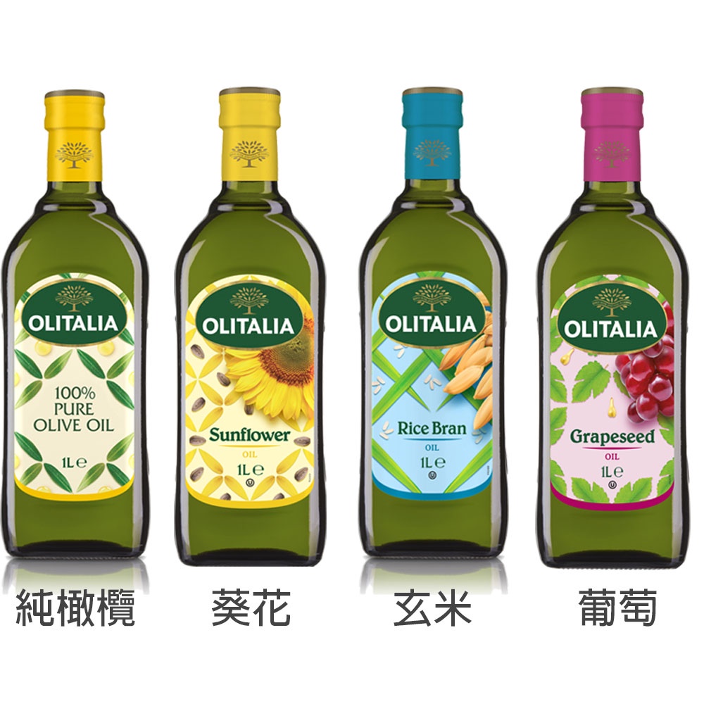 【奧利塔olitalia】1L 純橄欖油+玄米油+葡萄籽油+葵花油 (4瓶/禮盒組) 義大利原裝進口 效期一年以上 現貨
