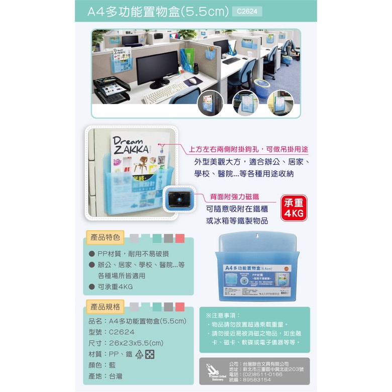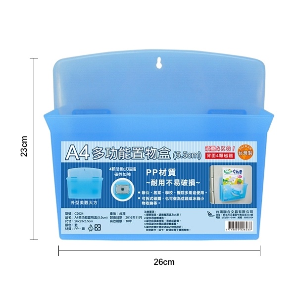 【好夾文具】W.I.P 聯合 NO.C2624 A4 磁性 多功能置物盒(5.5cm)