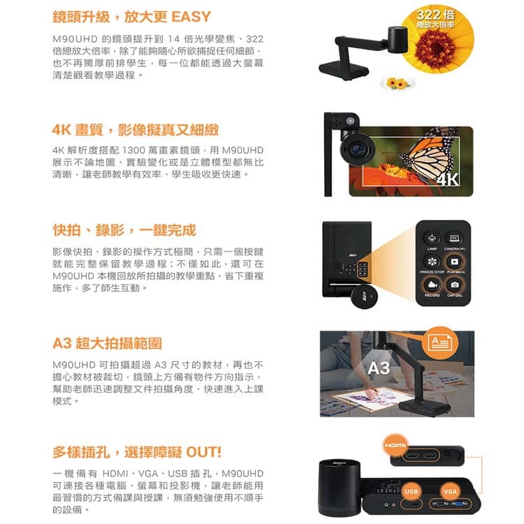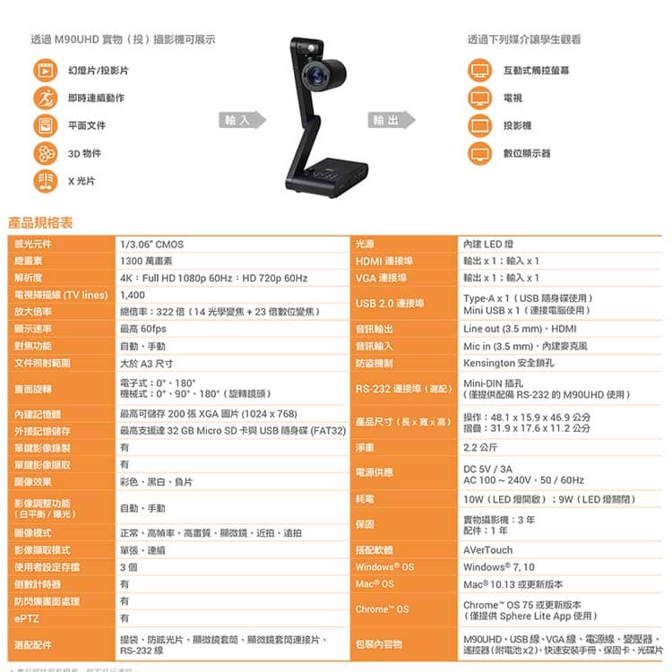 【新北中和】AVer M90UHD 機械式手臂 4K 實物攝影機/投影機