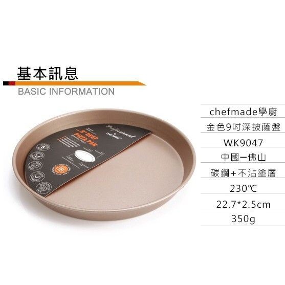 【學廚WK9047-深披薩盤9寸】披薩烤盤 金色不沾模 蛋糕模烘焙模具
