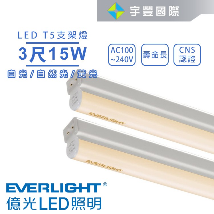 【宇豐國際】億光 LED T5 3尺15W 串接燈 支架燈 層板燈 燈管+燈座一體成型 黃光/自然光/白光 全電壓