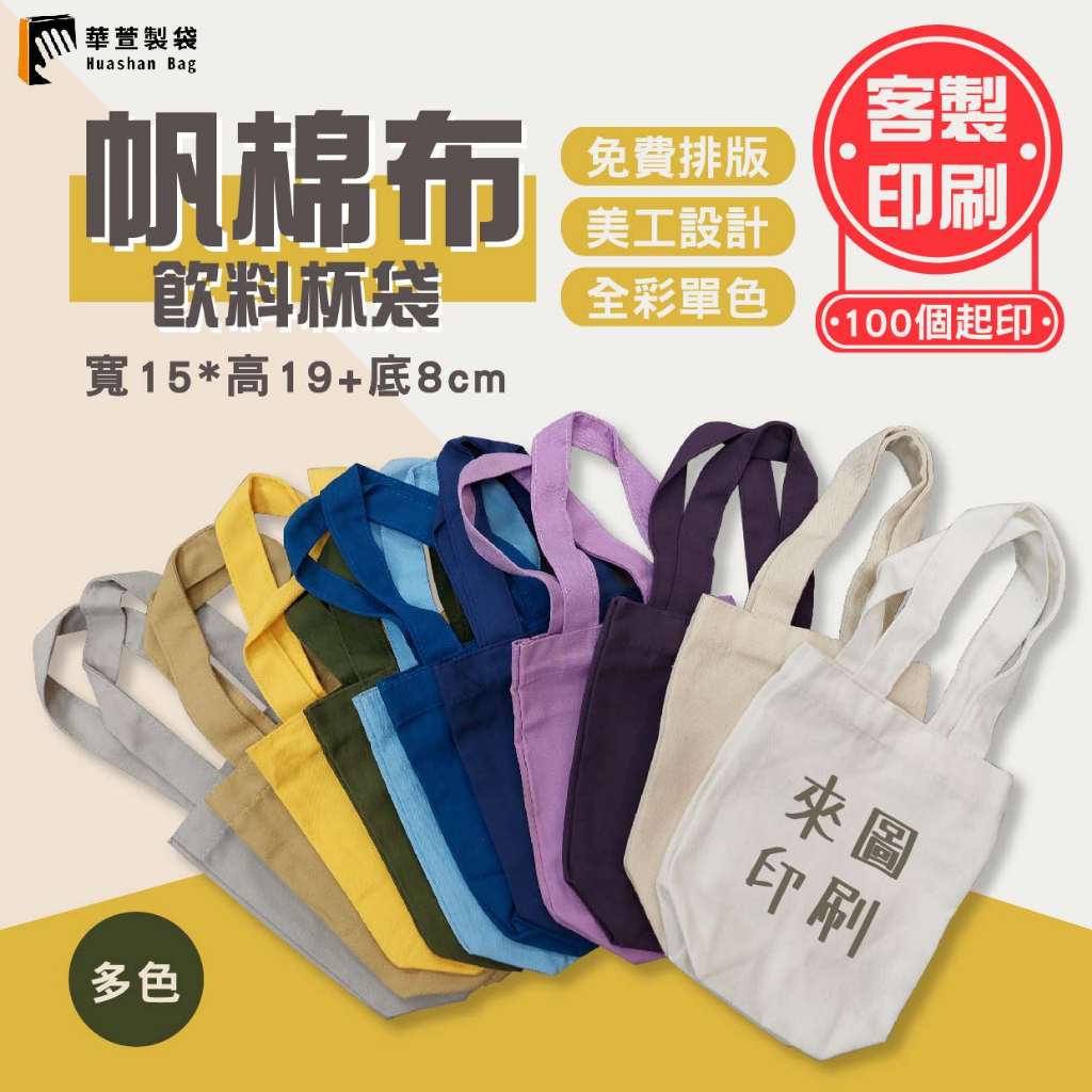 【客製化印刷】帆棉布飲料杯袋 空白公版 杯套 印刷LOGO 飲料袋 一杯袋 環保杯袋 手提杯袋 彩色印刷 華萱製袋