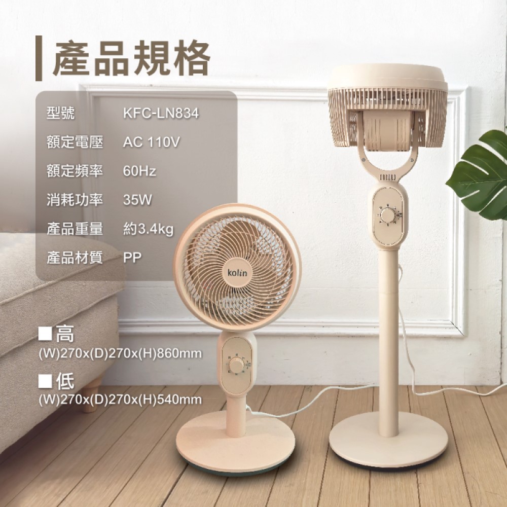 【Kolin 歌林】米色系9吋全方位擺頭循環立扇 KFC-LN834 免運費