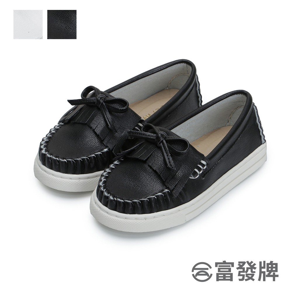 (限時出清)【富發牌】皮革感流蘇厚底兒童懶人鞋 兒童休閒鞋 懶人鞋 厚底休閒鞋 兒童厚底鞋 防潑水休閒鞋 全白休閒鞋