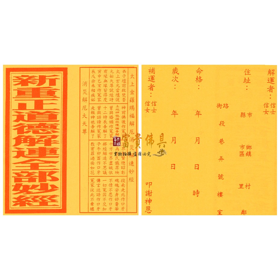 【富貴佛具】消災解連玅經 改連真經(疏文)改運經 改運真經 改連經 改年經 消災改連玅經 解連經 消災 解厄 補運金疏文