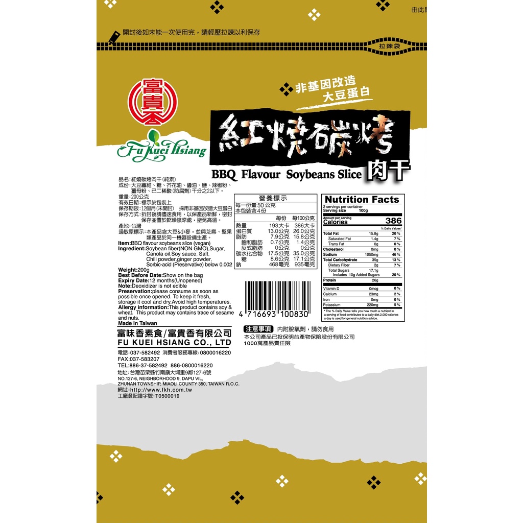 【富貴香 官方直營】紅燒碳烤肉干 200g 素肉片 素肉乾 素肉干 素食 零食 植物肉干