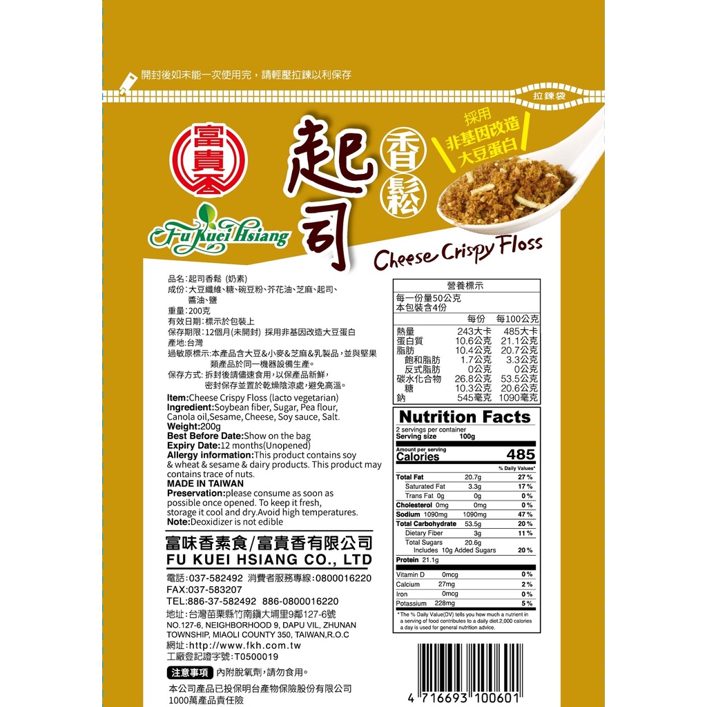 【富貴香 官方直營】 起司香鬆 200g 素鬆 香鬆 素肉鬆 素香鬆 植物香鬆 奶素