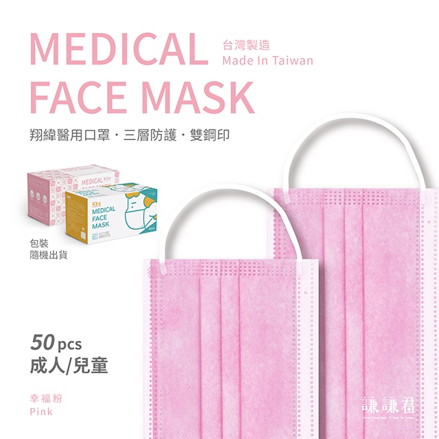【寬敏實業】翔緯醫用口罩-謙謙君-幸福粉(短效期)✨雙鋼印✨成人醫療口罩50入
