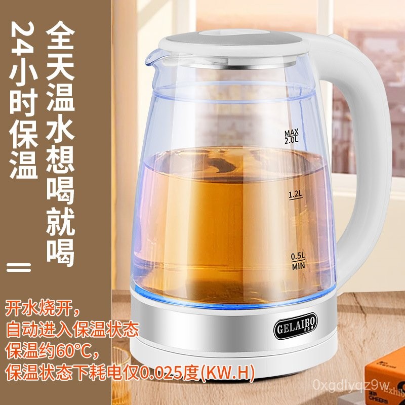 【專供】實用電熱水壺燒水壺大容量自動保溫雙層防燙玻璃水壺 FVEL