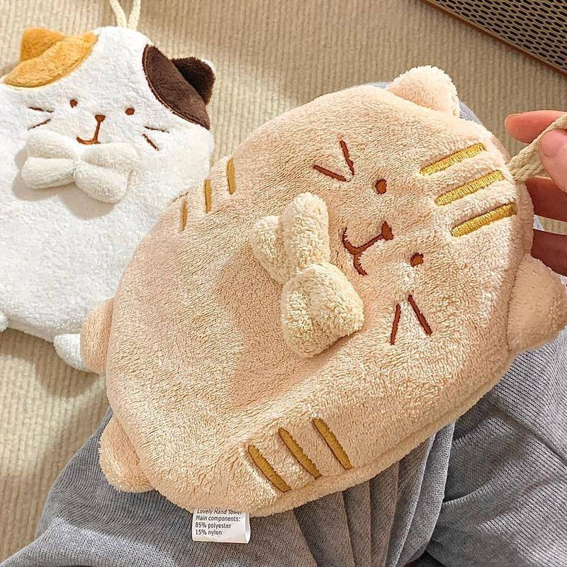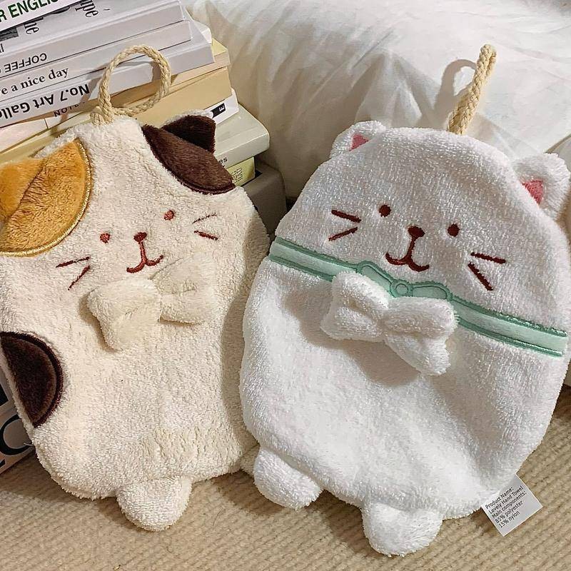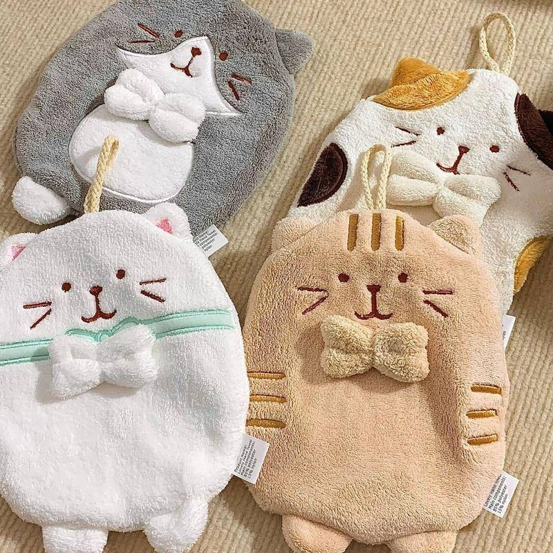 【小伊精選】ins可愛貓咪擦手巾|可掛式吸水小毛巾|適合擦臉浴室廚房使用|兒童家用的理想選擇,讓生活更便捷!