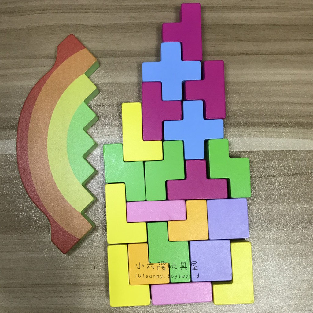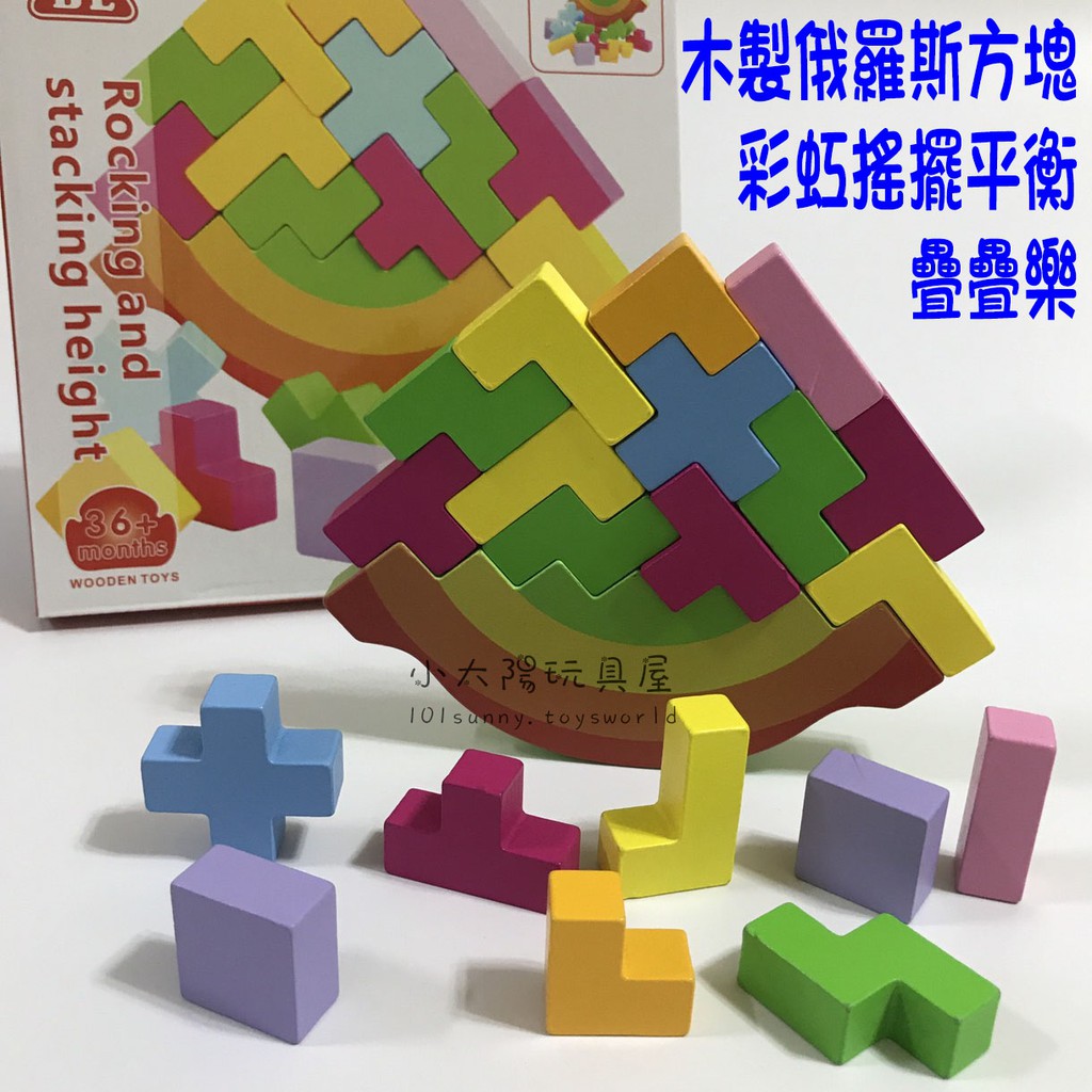 【小太陽玩具屋】木製俄羅斯方塊彩虹搖擺平衡疊疊樂 俄羅斯方塊 疊疊樂 積木 桌遊 拼圖 益智玩具 教具 9024