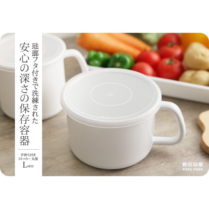 【小胖日貨】現貨 日本製 野田琺瑯 杯型 把手 琺瑯 保鮮盒/保存容器(附塑膠蓋) L號 ◎MS-14M/1.5L◎
