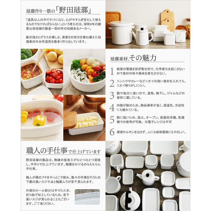 【小胖日貨】現貨 日本 野田琺瑯 深型 琺瑯 保鮮盒/保存容器(附塑膠蓋) L號 WRF-L 1.5L ◎日本製