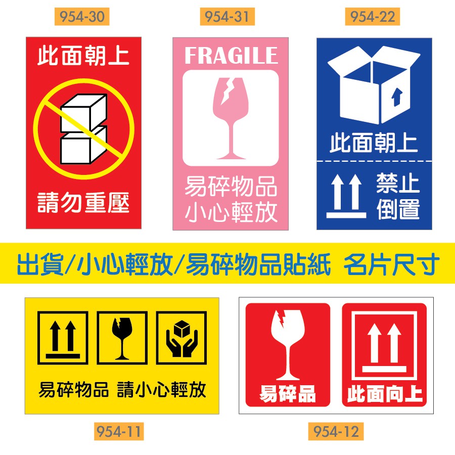 【少量10個即可印】客製化名片型貼紙/亮膜防潑水/ 水果 小心輕放/此面朝上/易碎品/包裝/出貨/產品標示/外箱
