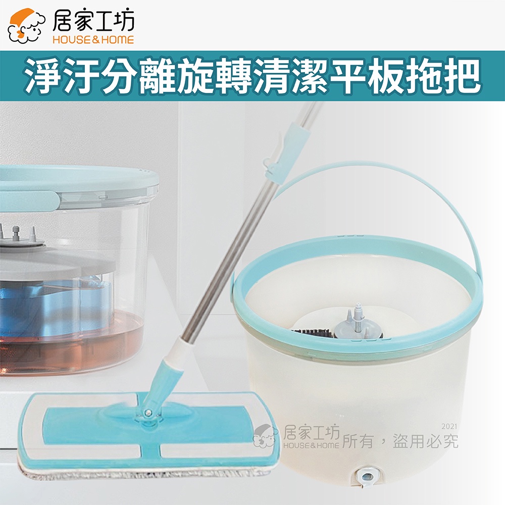【居家工坊】💥限時出清價 全站最低價台灣現貨24H出貨💥淨污分離旋轉清潔平板拖把/懶人拖把/旋轉拖把 (一拖一桶兩布)