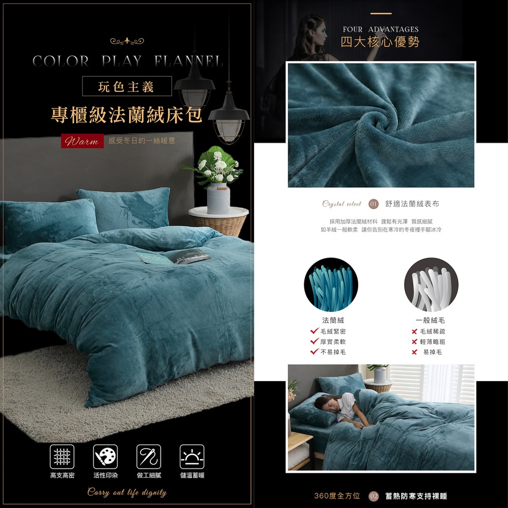 【岱思夢】藏藍 頂級素色法蘭絨床包組 單人 雙人 加大 兩用毯被套 法萊絨 [超取有出貨限制,詳請參閱內容說明]
