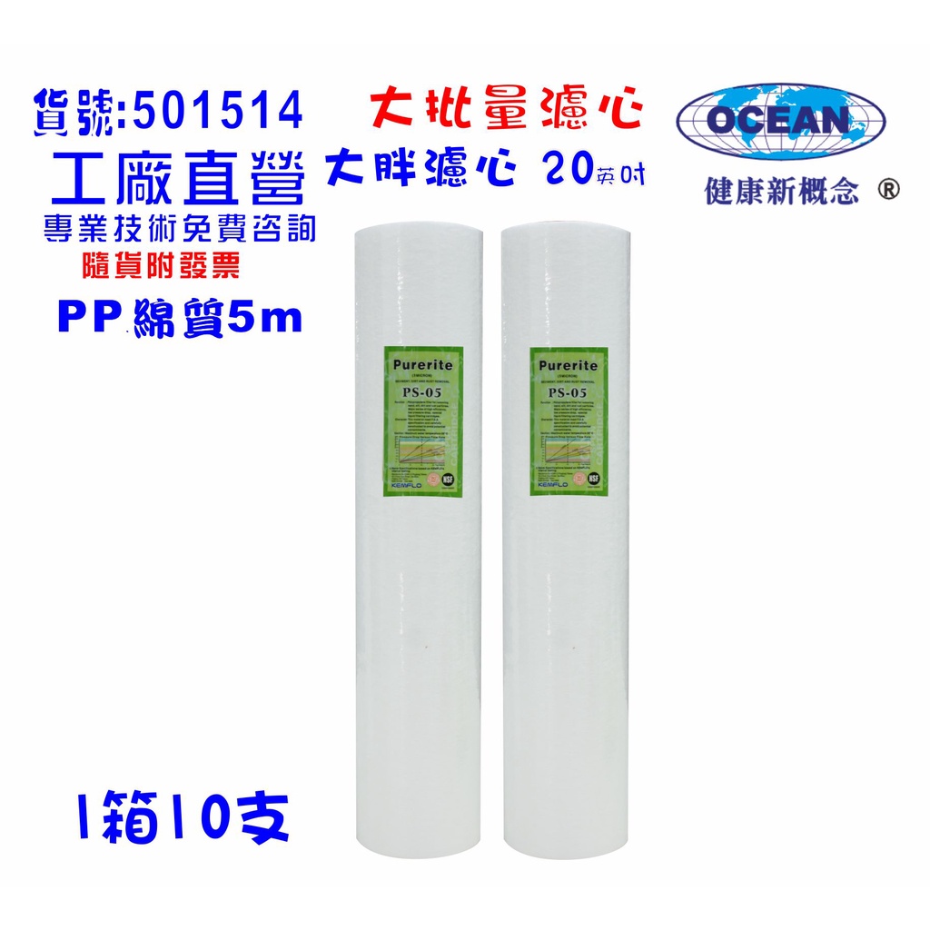 【巡航淨水】大批量20"NSF-PP5m大胖棉質濾心10支1箱餐飲濾水器.淨水器.水族箱.水塔過濾器貨號:1514