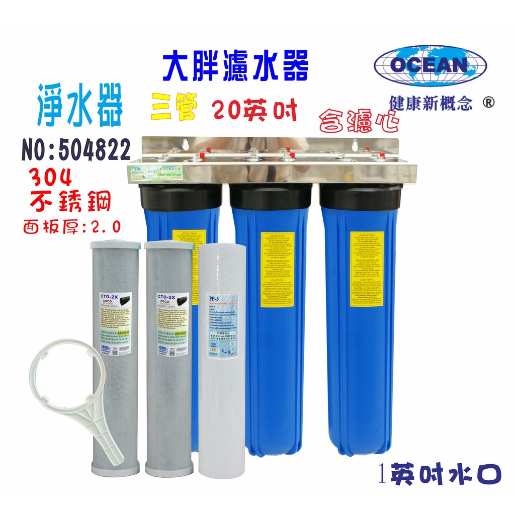 【巡航淨水】水塔過濾器地下水處理20吋大胖三管304白鐵淨水器.除泥除雜質除氯除垢.地下水.水族養殖.貨號4822