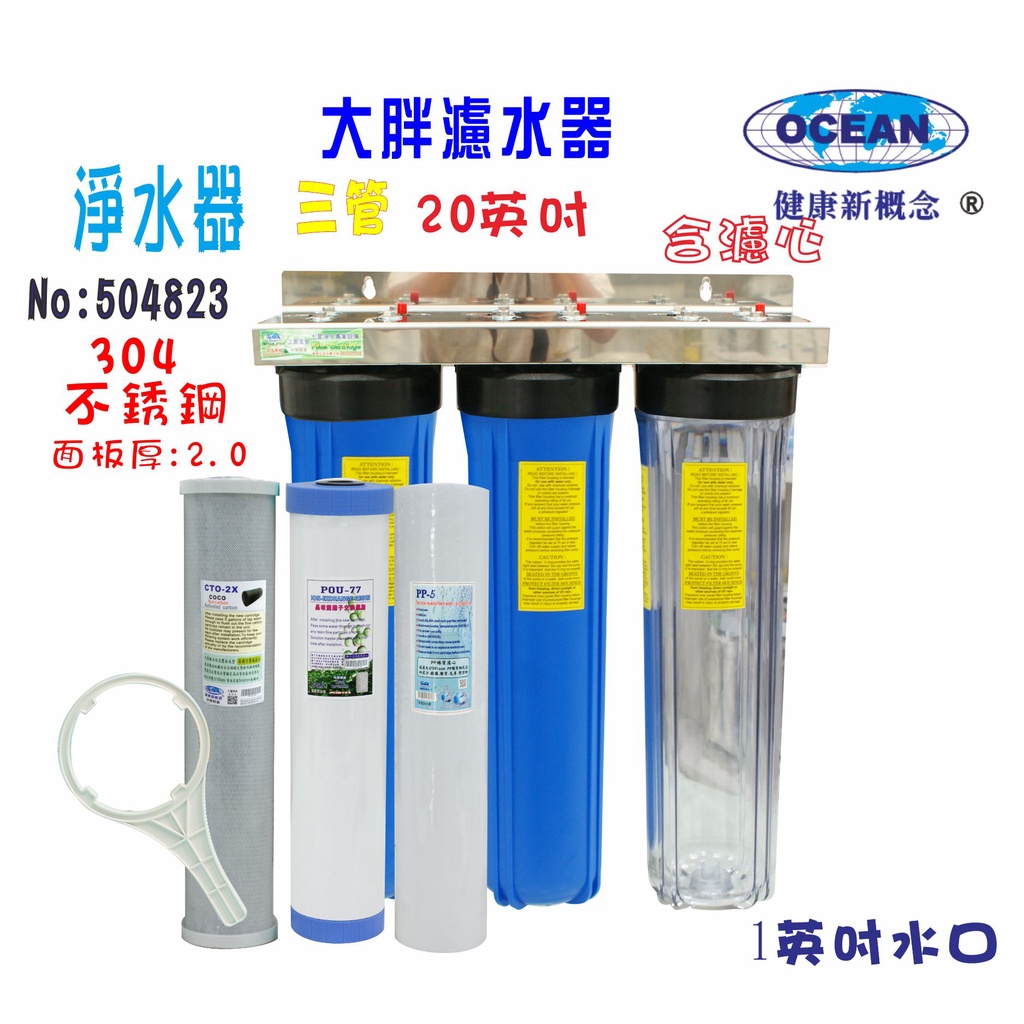 【巡航淨水】水塔過濾器地下水處理20英吋大胖三管304白鐵淨水器.除泥除雜質除氯除垢.地下水.水族養殖.貨號4823