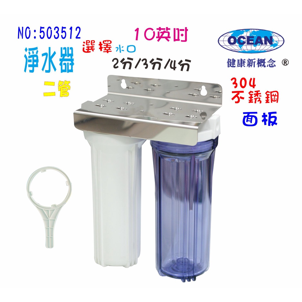 【巡航淨水】淨水器10英吋二管白鐵濾殼組(一透一白).電解水機前置過濾器.飲水機.軟水器.貨號3512