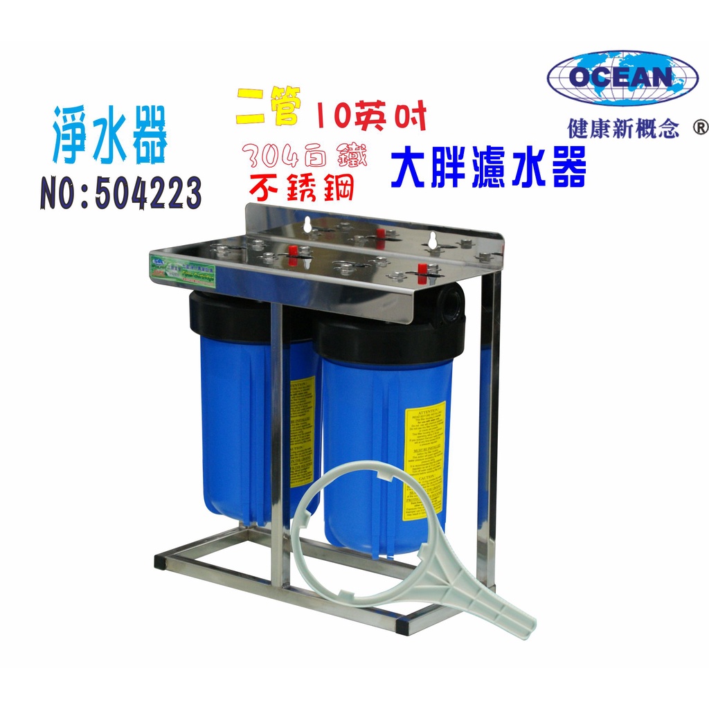 【巡航淨水】濾水器10吋大胖二管腳架白鐵淨水器.除泥除雜質除氯除垢.水塔過濾器地下水.水族養殖灌溉.貨號4223