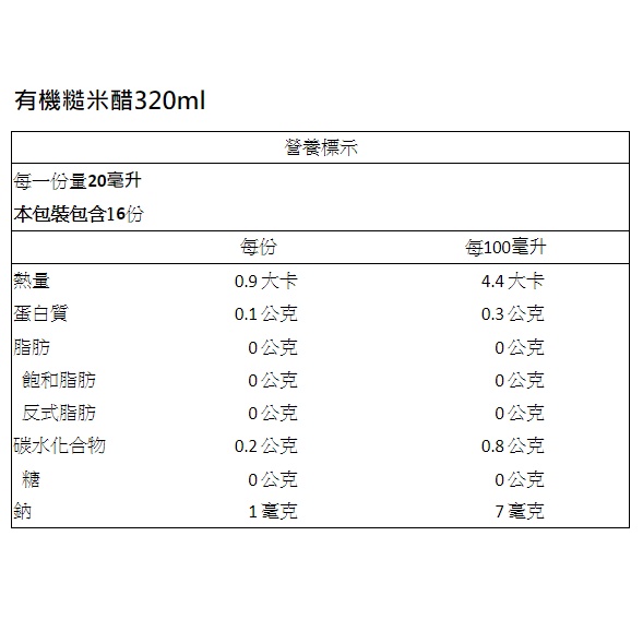【工研醋】有機糙米醋320ml