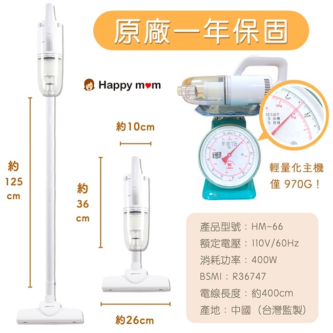 【幸福媽咪】渦流氣旋 式手持/直立式/吸塵器/塵蹣機(HM-66)輕量+HEPA濾網*2入