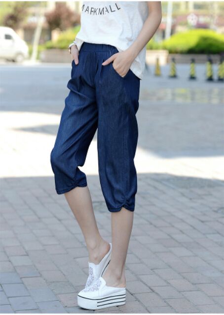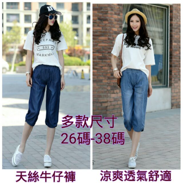 【廠商倒閉/零碼降價】加大碼/彈性佳/天絲牛仔褲/薄款/鬆緊/寬鬆/休閒