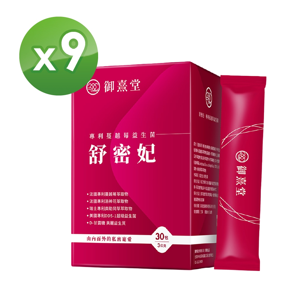 【御熹堂】舒密妃 專利蔓越莓益生菌 9盒 (30包/盒)《DDS-1超級益菌、36毫克原花青素、D-甘露糖-呵護私密》