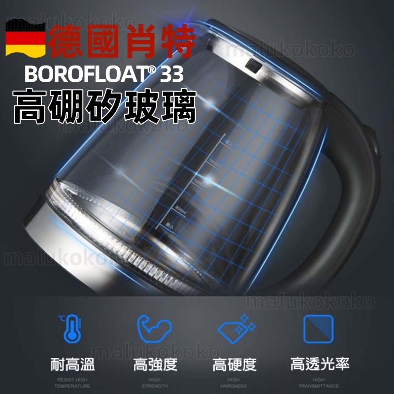【德國精工】 德國肖特高硼矽玻璃 304不鏽鋼 藍光快煮 快煮壺 玻璃電茶壺 電茶壺 玻璃養生壺 電煮壺 養生壺