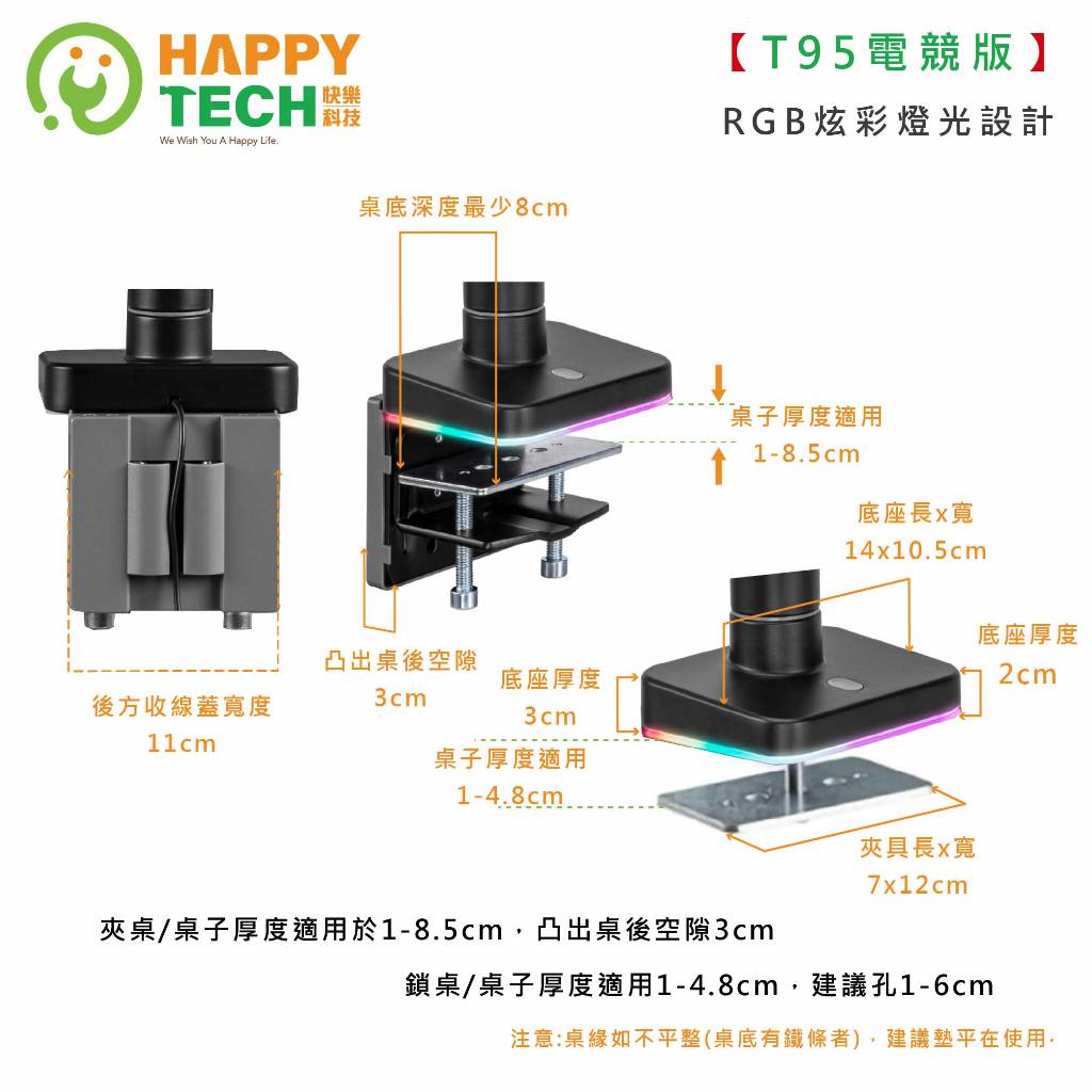 【快樂桔子】T95-C01L 高承重20KG 氣壓式49吋 鋁合金 電競 螢幕支架 螢幕架 RGB G9 懸臂支架 懸浮