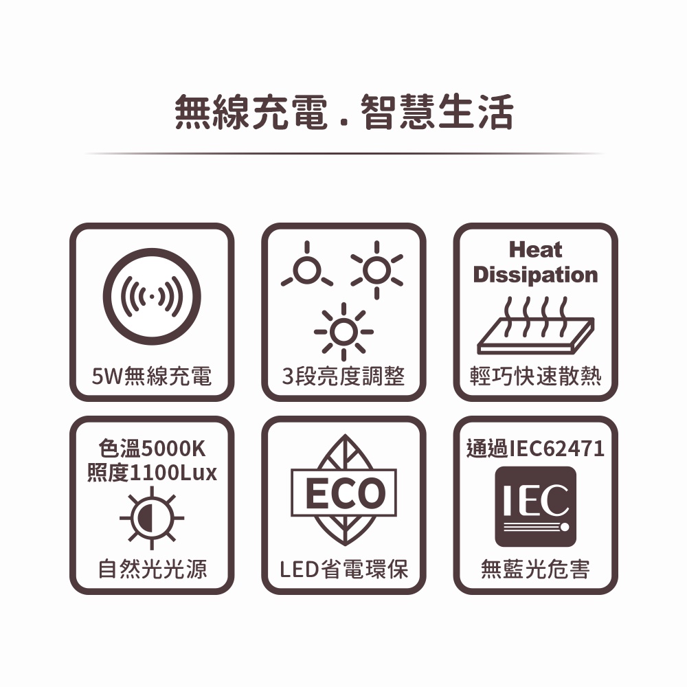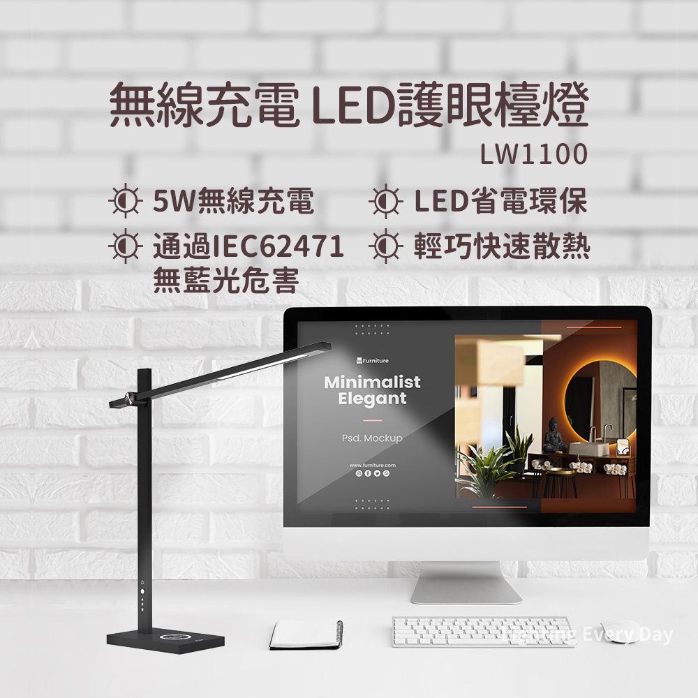【快譯通Abee】LW1100 無線充電LED護眼檯燈 省電 檯燈 無線充電 LED