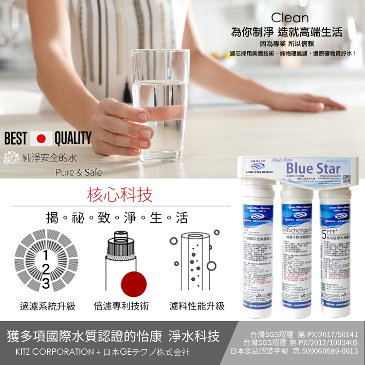 【怡康淨水】藍星系列快拆式三道軟水淨水器