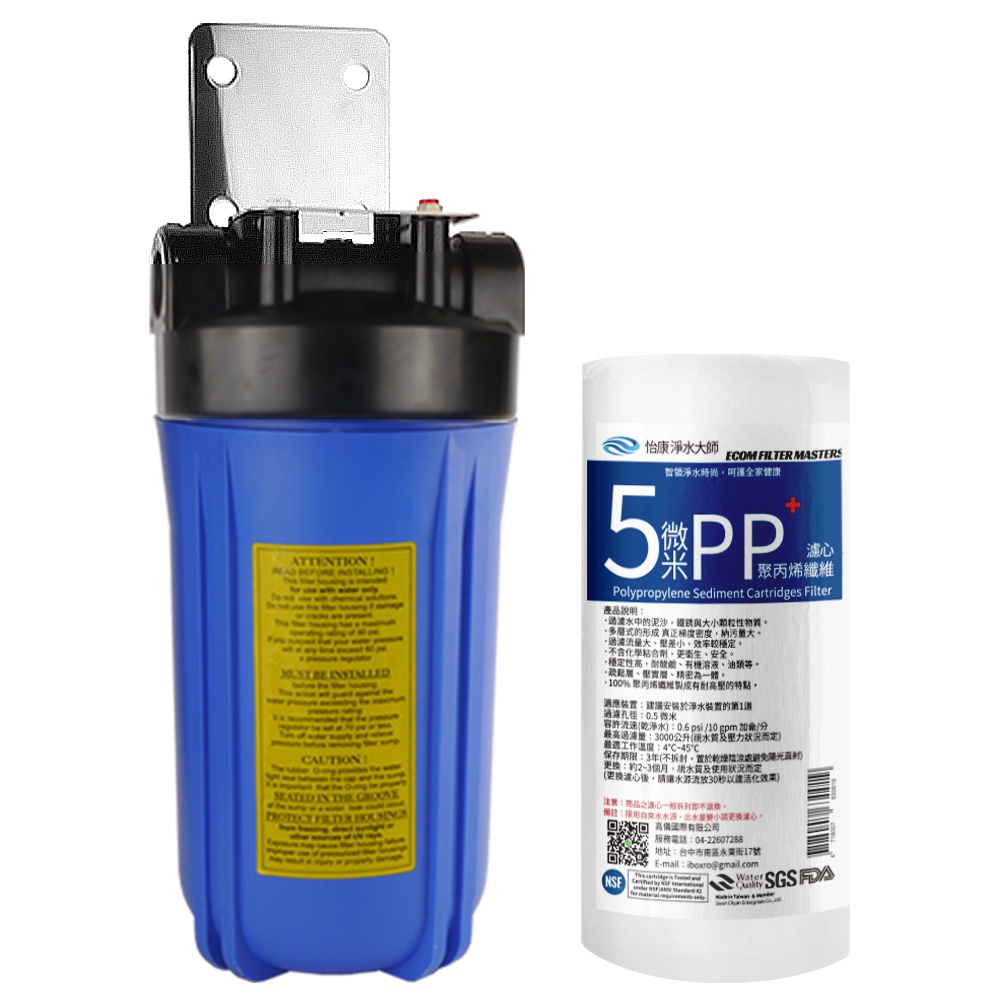 【怡康淨水】10吋大胖單道藍色濾殼濾心吊片組