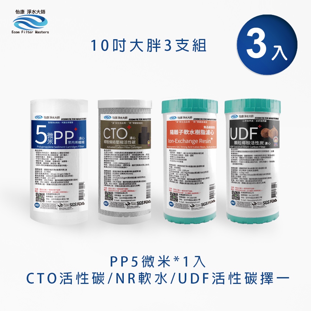 【怡康淨水】10吋大胖濾心軟水除氯過濾3支組