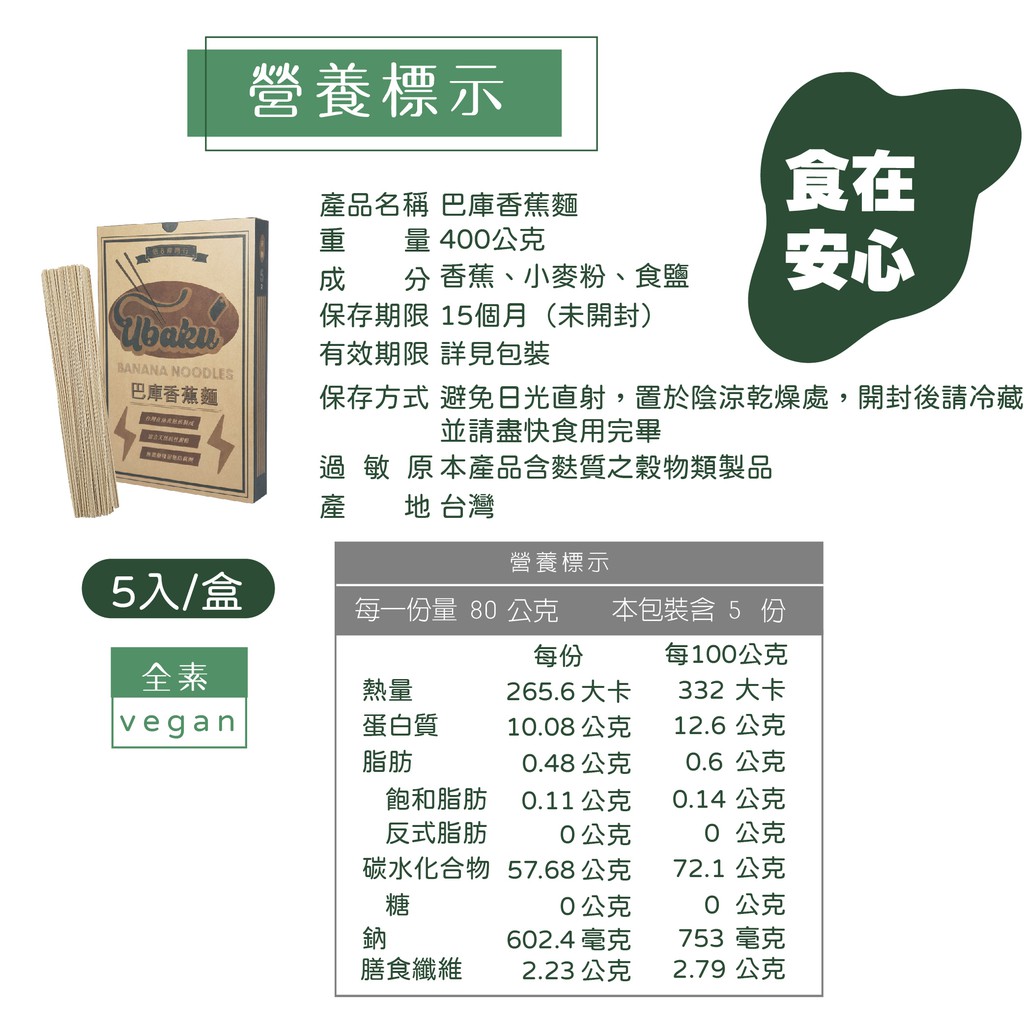 【悟8庫商行】 // 現貨 // 巴庫香蕉麵 低GI麵條 含膳食纖維 拌麵 一盒五入 機能性食品