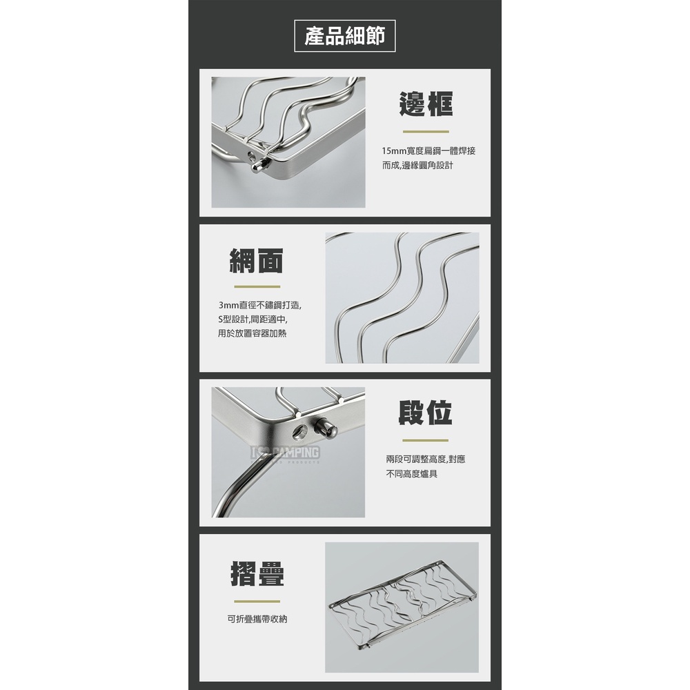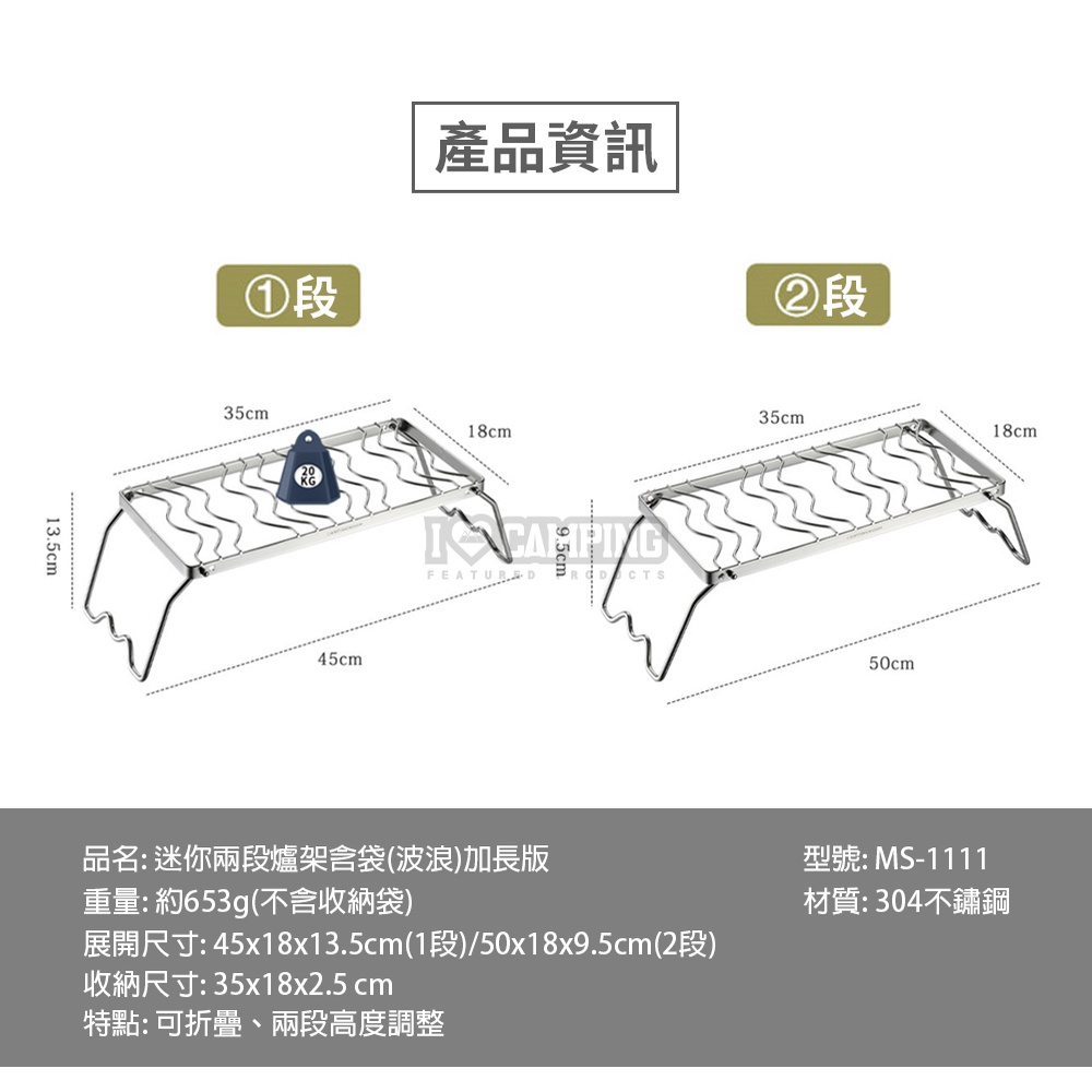 【愛上露營】柯曼 Campingmoon 迷你兩段爐架含袋(波浪) 加長版 MS-1111 不銹鋼 野炊 野營 露營