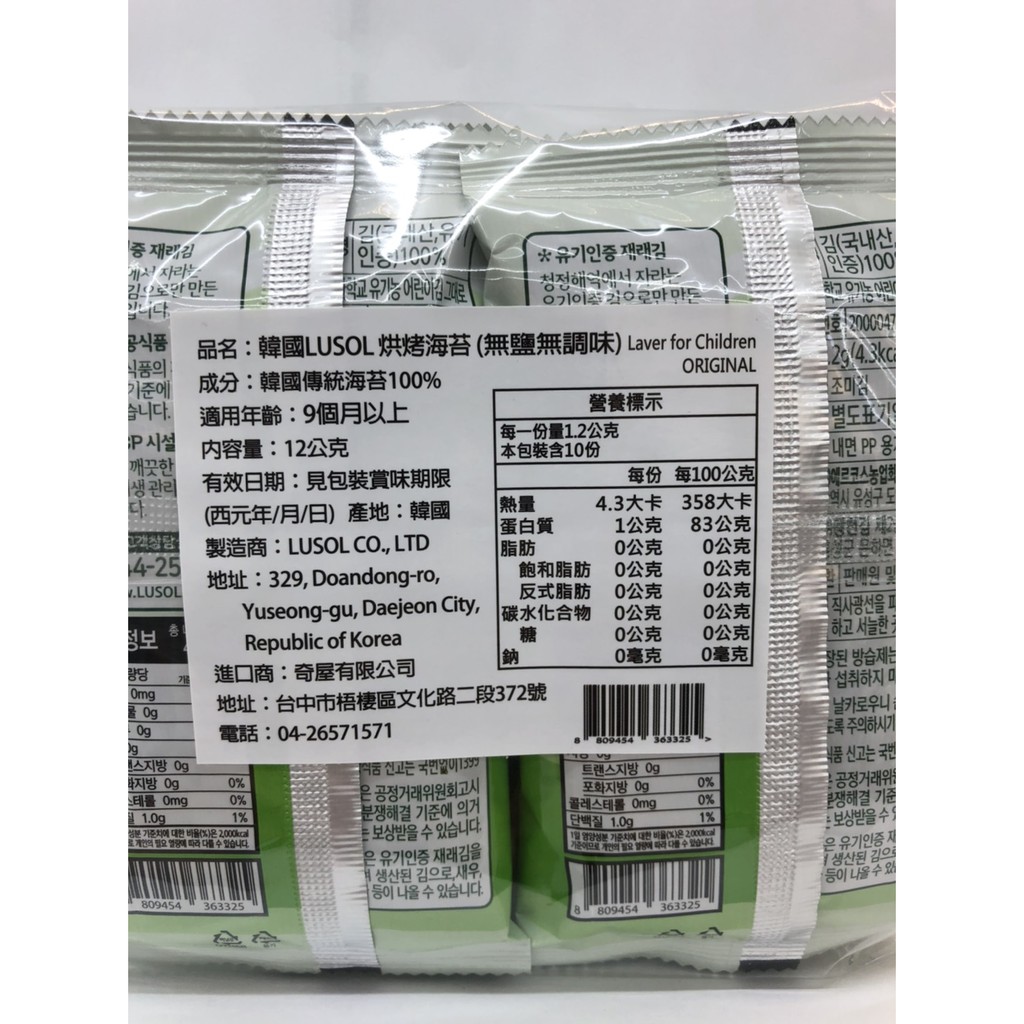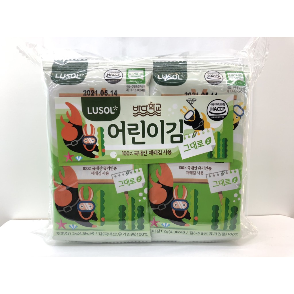 【愛噗噗】韓國 LUSOL 烘烤海苔 海藻/無鹽無調味 1袋/10包