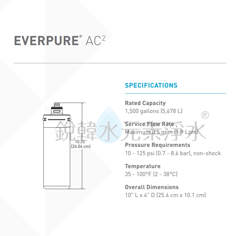 【愛惠浦】EVERPURE PURVIVE-AC2 濾心 原廠公司貨 銀離子抑菌+0.2微米過濾力AC2 銳韓水元素淨水