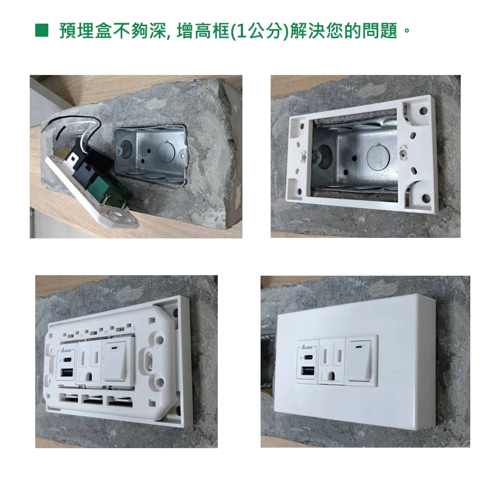 【接線盒增高框/外掛式斷耳救星-灰/黑】水電必備神器系列-一物兩用USB插座/開關插座 接線盒增高框/斷耳救星 台灣製造